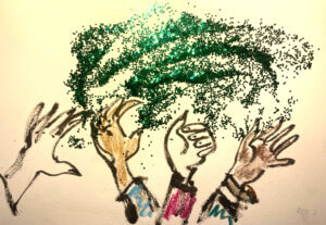 In ganz Lateinamerika protestieren Frau mit „Marea Verde“, der grünen Welle aus grünem Glitzer gegen Abtreibungsverbote. Es sind machtvolle und fröhliche Manifestationen weiblicher Selbstbestimmung – so berichtet Lou. Übrigens experimentierten die Frauen mit gefärbtem Zucker.