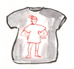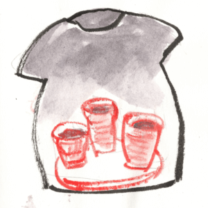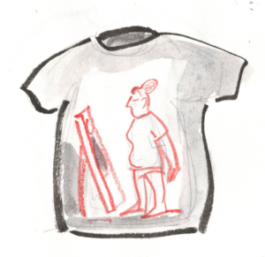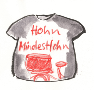 Sie würde sich mit dem T-Shirt – vor dem Spiegel posierend entdeckte sie, dasz der Aufdruck auf Brust und Rückenseite gedruckt war – an verschiedene Orte begeben, Orte mit arbeitenden und nicht-arbeitenden Menschen und arbeitenden, mit Alten, Jungen und Mittelalten und Reaktionen notieren. Sie übte das Posieren mit ihrer weisz-auf-schwarzen Botschaft. Nach dem Tee wollte sie starten. Erste Station: im Zuhause. Früher hatte sie es manchmal Homeoffice genannt. Während der Pandemie hatte niemand gefragt, ob sie so arbeiten könne. Das war eben so. Arbeiten ohne Arbeitszimmer, ohne geeignetes Büro-Mobiliar. Sie hätte den Arbeits-Satz damals zu Tom rufen können. Erinnern konnte sie sich nicht. Er verliesz zu unregelmäszigen Zeiten die gemeinsame Wohnung. Sonst sasz er mit riesigen Kopfhörern in einem thronartigen Drehstuhl, dessen Lehne ihn überragte im Wohnzimmer vor einem halbrunden Bildschirm. Ganz sicher hätte er im Rausgehen lässig „dann lasz es!“ gerufen. Hatten sie jemals über Arbeit gesprochen, also über Bedeutung oder Bedingungen? Tom schien seinen Job einerseits nebenbei zu erledigen, andererseits hatte er mit dem Gaming eine Art Berufung gefunden.
