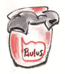 Position 4: hier schien sich wieder etwas hineinzumogeln in Melanies Versuchsreihe. Auf dem Weg in einen hochpreisiges Coffee Shop. Schrift sprach zu ihr. Ein immergültiger Spruch. Ein gröszerer Zusammenhang. Ein ganz kleiner Klebezettel, umgeben von Club-Stickern und Wohnungsgesuchen am Laternenmast. Der Urheber war angegeben. Hatte er selbst es angeklebt? Paulus? (2. Brief an die Thessalonicher, Kapitel 3, Vers 10)