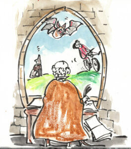 Überall soll es sie geben: Frauen mit übernatürlichen Kräften. Sie bedrohen Grenzen, hocken gar auf ihnen und schauen böse. So steckt die Zaunreiterin, die „Hagazussa“, im Begriff „Hexe“. Die Angst der Männer vor dem Fremdkörper FRAU konstruierte das patriarchale Haupt-Zerr-Bild der Frau: Die HEXE.