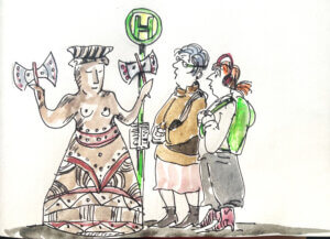 Zusteigen bitte! Wir halten an sieben Stationen. Eine heiszt: „Ich kann so nicht arbeiten“, eine andere „Schnurgerade“. Unsere Heldinnen und Anti-Heldinnen fahren Bus oder Automobil. Aber einige erquicken sich auch am warmen Thermalwasser.